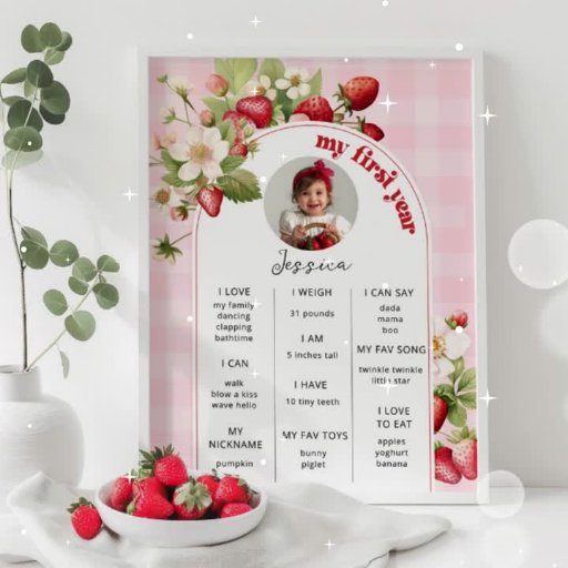 Strawberry berry first birthday party banner