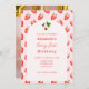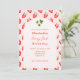 The design features a vibrant strawberry illustration, surrounded by whimsical berry accents and a playful colour scheme. The invitation is adorned with customisable text fields, allowing you to personalise it with your child's name, age, and party details.