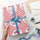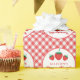 This wrapping paper features a red chequered background, a white circle pattern with little red strawberries and the saying "Berry First Birthday". Easily customise the text with the guest of honour's name. An adorable, 1st birthday wrapping paper, perfect for a Berry First themed birthday party!