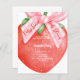 A large red stawberry with a pink bow for a Berry Sweet Baby Shower. Personalise and add your party details.