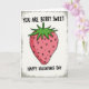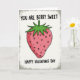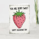 This greeting card features a big, stylized strawberry in soft pink with a green stem, outlined in black at the center. Instead of regular seeds, the strawberry is covered with small dark hearts, giving it a sweet, romantic look ❤️. The background is off-white, and a textured gray border frames the whole design like a simple picture frame. At the top, the card says “YOU ARE BERRY SWEET” in bold, hand-drawn black letters. At the bottom, it reads “HAPPY VALENTINES DAY” in the same hand-drawn style, centered under the strawberry. The strawberry feels friendly and inviting, like it’s made to make someone smile 💌. It’s a fun way to say you care, and it pairs nicely with a little treat like 🍫