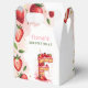 Make your party favours extra special with this adorable favour box featuring a strawberry-themed letter "F" cake design! The watercolor illustration showcases a cake-shaped letter "F" topped with fresh strawberries, pink frosting, and a birthday candle, framed by an elegant strawberry border. Perfect for filling with candies, small gifts, or treats for your guests. A cute and festive addition to a strawberry birthday party!