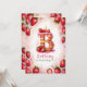 Celebrate a special birthday with this delightful strawberry letter "B" cake invitation! This charming watercolor design features a fun and festive cake shaped as the letter "B" decorated with fresh strawberries, pink icing, and a glowing birthday candle. The soft pink background with scattered strawberries adds a playful touch. Personalise with your child’s name, age, and party details for a one-of-a-kind strawberry-themed birthday celebration. Perfect for kids who love fruit-themed parties or summer birthdays!