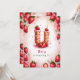 Celebrate a special birthday with this delightful strawberry letter "U" cake invitation! This charming watercolor design features a fun and festive cake shaped as the letter "U" decorated with fresh strawberries, pink icing, and a glowing birthday candle. The soft pink background with scattered strawberries adds a playful touch. Personalise with your child’s name, age, and party details for a one-of-a-kind strawberry-themed birthday celebration. Perfect for kids who love fruit-themed parties or summer birthdays!