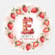 Add a sweet and personalised touch to your birthday party favours with this adorable strawberry-themed sticker! Featuring a watercolor letter "E" designed as a delicious strawberry cake, topped with fresh berries, pink frosting, and a glowing candle. A vibrant strawberry border enhances the design, making it perfect for sealing envelopes, decorating gift bags, or adding charm to party decorations. Ideal for a strawberry birthday celebration!