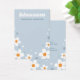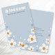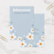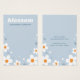 Earring jewellery display card featuring white strawberry blossom on a dusty blue background and your company or design name in a retro font.