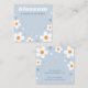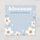 Square earring jewellery display card featuring white strawberry blossom on a dusty blue background and your company or design name in a retro font.