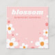Square earring jewellery display card featuring white strawberry blossom on a pink background and your company or design name in a retro font.