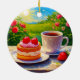 Strawberry Cake and Coffee Delight Ceramic Ornament