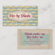 Cute decorative business card for bakers or baking biz featuring fruit pies in decorative tins with vintage, shabby, or retro vibe faux aged paper tag background, perfect for a take and bake pies business or home bakery.