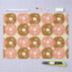 The tissue paper features a pattern of strawberry and chocolate frosted doughnuts with coloured sprinkles.