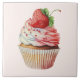 Ceramic tile with a yummy illustration featuring a delicious looking cupcake. White cream and a big strawberry adorn this yummy sweet treat.