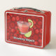 This is a standard metal lunchbox that appears to work just fine. We designed this box ourselves with an uploaded photo and custom text on the front and back. It looks absolutely beautiful except the front of the lunchbox is not centered like it shows in the photo. The print borders don't align with the inset flat part of the box where the preview photo online showed it perfectly centered in there. The back looks nice and centered though.