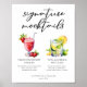 This wedding signature mocktails menu poster features simple script above two drinks and their ingredients for your reception. A cute Virgin Strawberry Daiquiri drink and non-alcoholic Mint Julep drawing above the couple's names and date.