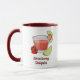 A glass of strawberry daiquiri with garnish. Custom text on both sides.