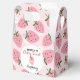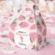 A charming pink favour box with adorable strawberry illustrations—perfect for sending guests home with sweet memories and small treats.