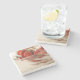 The coasters are gorgeous, a quality feel and heavy weight. They look like a precious archeological find. A rustic stone juxtaposed with a modern floral black and white print. I like the way the print goes slightly imperfect on the cut stone edges giving them a kind-of natural beauty.