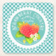 Strawberry Doilies Teal Gingham Square Paper Coaster