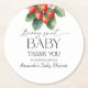 Elegant Watercolor Baby Shower Round Paper Coaster with strawberry and calligraphy text " Berry Sweet Baby" for celebration your beautiful baby to arrive!