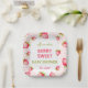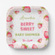 Cute, watercolor, boho sweet strawberry baby girl shower party decoration plates. All elements are chosen to bring good vibes, with a mix of summer colours: hot pink, pale pink, and grass green. The charming background with dots, along with the handwritten modern and elegant script, makes this design perfect for summer baby shower celebrations.