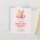 Strawberryes and ice cream for a Berry First Birthday party. Personalise and add your party details. Light pink background.
