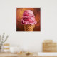 Strawberry Ice Cream Cone - Painterly Style Art Poster