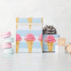 Strawberry Ice Cream Cone With Blue Stripes Wrapping Paper