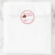 These personalised canning stickers will fit on top of your glass jam, jelly, and preserves jar lids. They have an image of a strawberry with a red chequered border pattern.