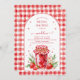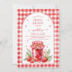 Celebrate the bride-to-be with this charming strawberry jam bridal shower invitation. Featuring a watercolor painting of a jar of strawberry jam in a vintage jar with red and white gingham jar cover, along with delicate strawberry plant blossoms and strawberries which is simply lovely. See coordinating items in our shop, Enchanted Finch.