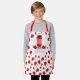 An apron with a smiling jar of strawberry jam. This cartoon illustration has strawberries on both sides. Below the drawing are the words “This Is My Jam!”. The apron has a background pattern of red strawberries.