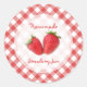 Customisable retro stickers for homemade strawberry jam, jelly or preserves jars with fresh blueberries on red and white gingham tablecloth pattern.