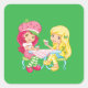 A sweet and cheerful t-shirt design featuring Strawberry Shortcake and Lemon Meringue sharing a pink lemonade at a picnic table, perfect for fans of friendship and fruity fun.