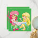 A sweet and cheerful t-shirt design featuring Strawberry Shortcake and Lemon Meringue sharing a pink lemonade at a picnic table, perfect for fans of friendship and fruity fun.