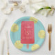 This cute girl's birthday party paper plate features a light blue background with slices of lemon and a strawberry popsicle in dark pink. Change the background colour and personalise for your needs. You can find more matching products at my store.