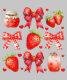 A cute and vibrant collection of strawberries, red gingham bows, heart icons, strawberry jam, and a refreshing strawberry drink, all set against a black background. This design oozes sweet, cosy, and summery vibes with a charming, country-inspired twist.