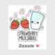 Strawberry Milk Shake Funny Food Pun features a glass of milk and strawberries shaking and grooving to the beat of a song. Funny Pun gift for family and friends who shake with excitement when enjoying strawberry milkshake and puns.