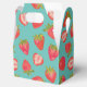 Strawberry pattern favour box on green background, perfect for birthday parties, wedding and other celebrations. Matching items available. Original art from artists own illustrations. Please use the message me button below for help with further customisation and special requests. © Zoe Chapman Design