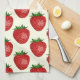 Strawberry Pattern, Red Strawberries, Fruit, Leaf Tea Towel