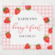 Strawberry Pink Berry First Plaid Gingham Birthday Sparkling Wine Label