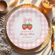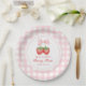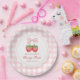 Strawberry Pink Bow Girl 1st Birthday Paper Plate