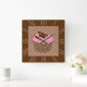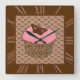 Strawberry Pink Frosted Cupcake Square Wall Clock