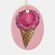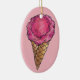 Strawberry Pink Ice Cream Waffle Cone Scoop Ceramic Ornament