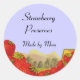 Bright red strawberries tumble over a scenic California country landscape in this unique, retro kitchen art. All elements of this design are from authentic vintage fruit crate labels produced in the 1940s.