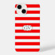 Strawberry Red and White Striped Initials Monogram Case-Mate iPhone Case