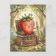 A fantasy strawberry queen or king sitting on a throne of books with a pencil