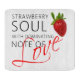 Red strawberry berry with green leaves and a text Strawberry soul with dominating note of love. One of a kind t-shirts, prints and gifts for everyone. Love and romance theme. Square format products and souvenirs.