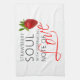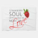 Red strawberry berry with green leaves and a text Strawberry soul with dominating note of love. One of a kind t-shirts, prints and gifts for everyone. Love and romance theme. Horizontal or landscape orientated products and souvenirs.