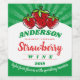 Fun wine labels for your homemade strawberry wine, shrub, or cordial, featuring bold cartoon style strawberries, personalised with your name and text and choice of background colours.