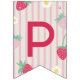 Decorate your strawberry-themed birthday party with this cute Happy Birthday Bunting Banner. It features hand-drawn strawberries in red and pink, green leaves, and white berry bloom accents, perfect for a “Berry Sweet” or “Strawberry” themed celebration. Hang it above the dessert table, use it as a backdrop, or display it at the entrance to welcome guests with bright, joyful style.