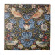 A decorative ceramic tile, with the design, Strawberry Thief (1883) by William Morris (1834-1896), one of his most popular textile designs from the arts and crafts period. A pattern with birds (Thrush), strawberries and foliage.